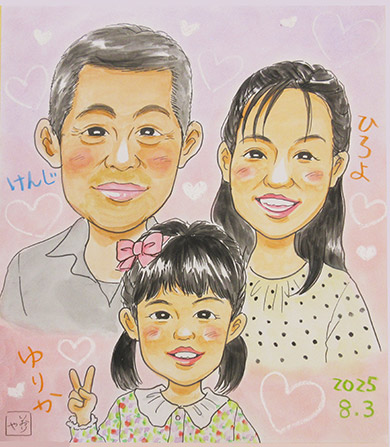 似顔絵は今回家族似顔絵が多く、にぎやかに描かせて頂きました。