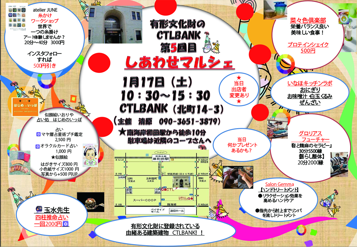 1/17(土)しあわせまるしぇにて占いと似顔絵描きます